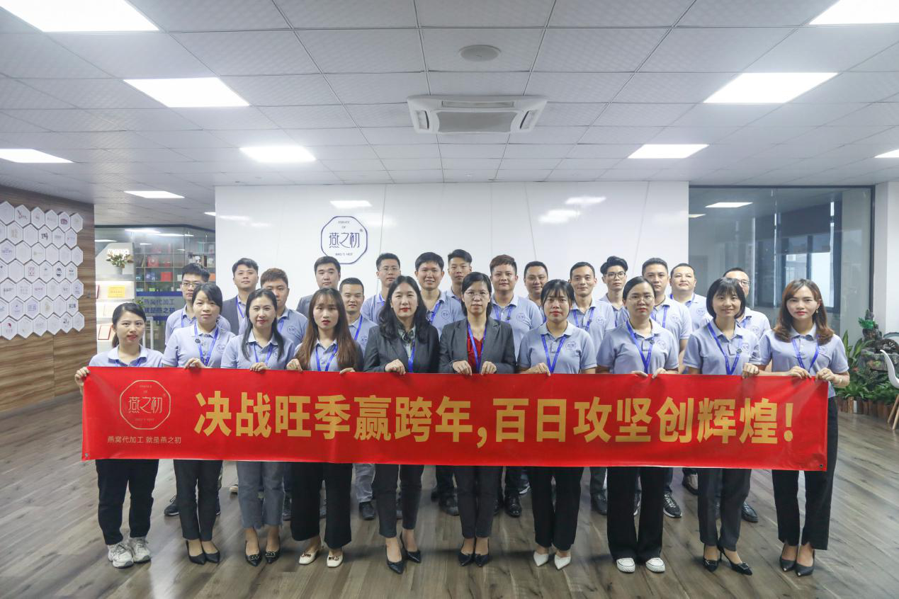 旺季是定基础、抢市场、夺全胜的决战时期,是促发展、保大局、定全年的关键时期。为了今年能够乘胜而进,继续保持领先地位。燕之初全体员工精神振奋、严阵以待,开启了以“决战旺季赢跨年 百日攻坚创辉煌”为主题的旺季生产大会战模式。