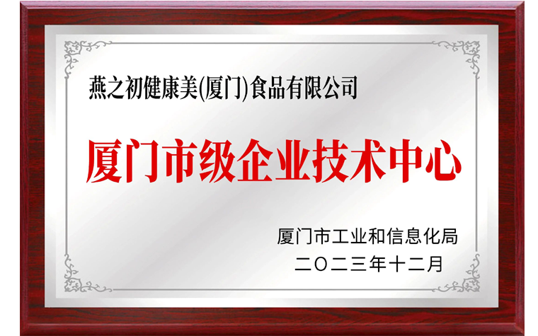 燕之初荣获「厦门市企业技术中心」认定