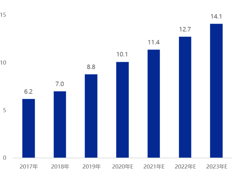 图 | 2017年-2023年中国健康产业市场规模变化趋势(万亿)