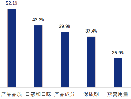 居民消费水平不断提高,消费者对于燕窝产品品质的追求不断提升。在燕窝消费者调查中显示,有52.1%消费者在选购燕窝产品时,会优先考虑燕窝品质问题。