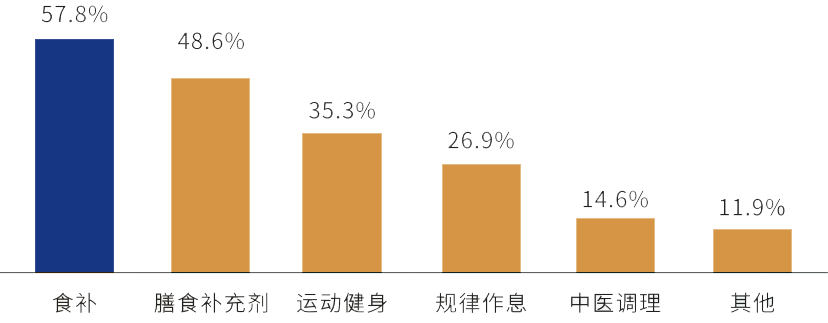 食补成为中国消费者养生保健的首选方式,艾媒数据显示,在食疗、运动、中医调理等众多养生保健方式中,食补方式占比最高,达57.8%。