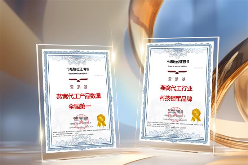 斩获“燕窝代工产品数量全国第一”*1、“燕窝代工行业科技领军品牌”*2两项认证,夯实行业话语权。
