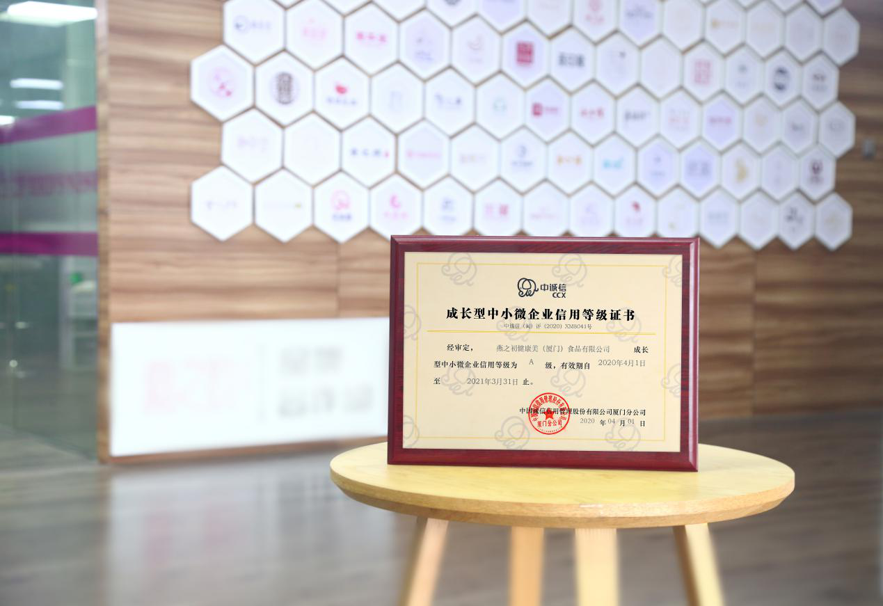 内容提要:近日,燕之初健康美(厦门)食品有限公司(以下简称燕之初)被正式认定为2020-2021年度厦门市成长型中小微企业,同时获评成长型中小微企业信用等级A级荣誉称号。