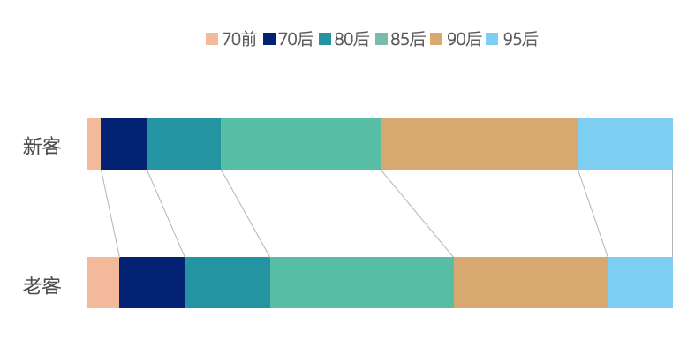 天猫平台2021年燕窝新老客年龄分布