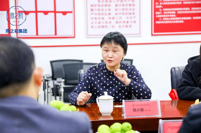 近日,厦门市技术创新协会秘书长陈小菲一行走进燕之初参观调研。燕之初集团副董事长陈旭、总裁黄荣辉等公司领导热情接待。