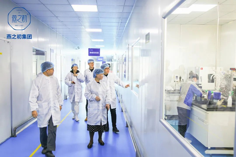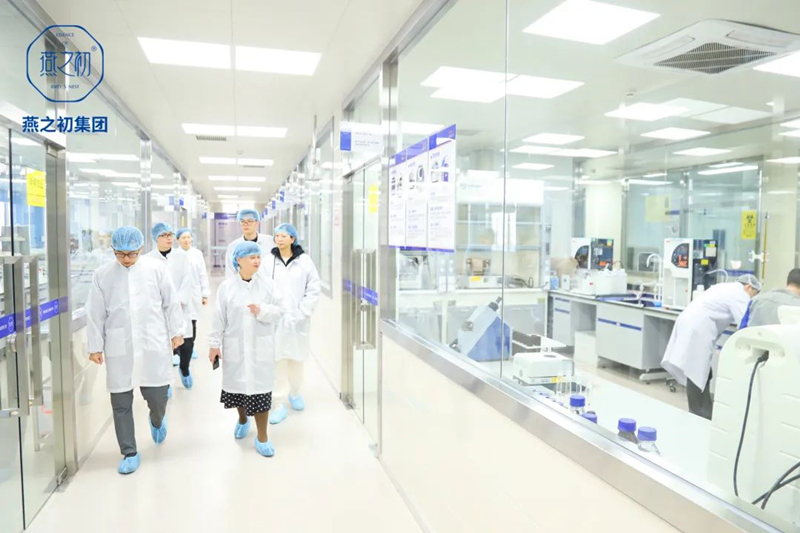 秘书长陈小菲一行首先参观了燕之初生产车间、质量研究与检测中心,听取了燕之初集团发展历程、发展现状、发展规划等情况汇报,详细了解了燕之初在科技创新中取得的科研成果。
